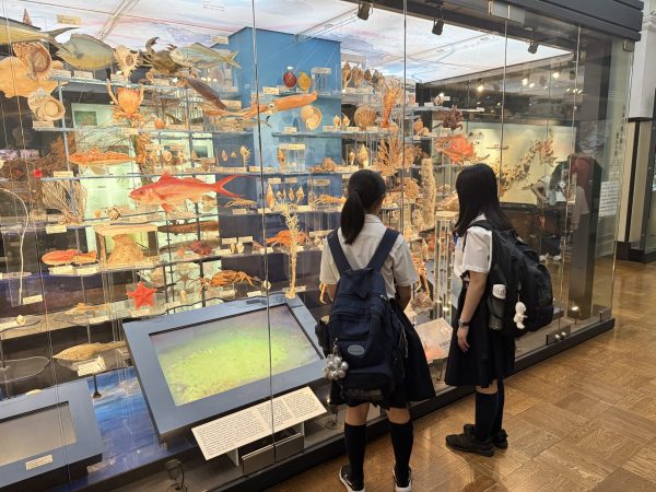 本日、中等部1年は、上野の国立科学博物館を訪問しました。事前レクチャーを済ませているため、本日は広い館内を思い思いに見学し、見聞を深めていました。これから、夏期課題の「ポップ作り」に取り組みます。