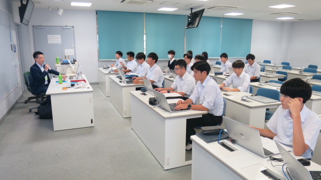 髙山様、鵜木様は、日頃から多くの企業に接して対応されているだけに、ご経験に裏打ちされた実際的なお話は真に迫ったものであり、銀行が担っている確固たる責任や使命といった感覚が生徒らに伝わってまいりました。50分の授業時間はあっという間でしたが、終盤は多くの質問が上がり、懇切丁寧にご回答をいただいた次第です。